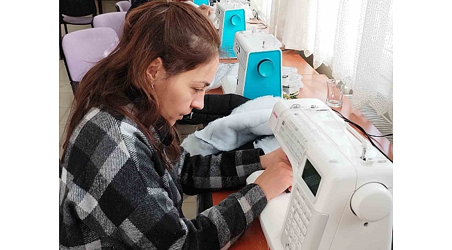 Kursiyer Semiha Soytürk ise "Burada mont dikiyoruz Bere, pijama, panço, battaniye çocuk için bunları yapıyoruz elimizden geldiği kadar yani yardımcı olmaya çalışıyoruz. 30'u aşkın ekibimiz var. Bir gündür yapıyoruz dün başladık bugün dikime başladık. Sayısını bilmiyoruz şu anda poşetledik" diye konuştu.
