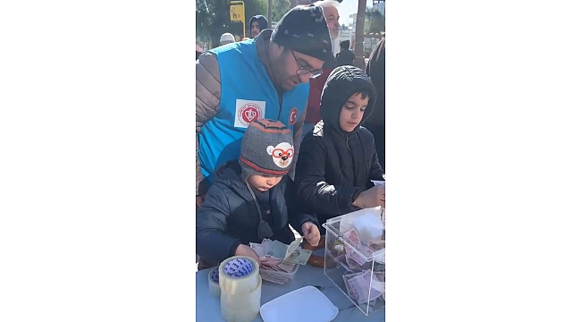 Aydın'ın Didim ilçesinde depremzedelere yardım için Kızılay öncülüğünde başlatılan yardım kampanyasına minik yürekler kumbaralarındaki birikimleri ile destek oldu.