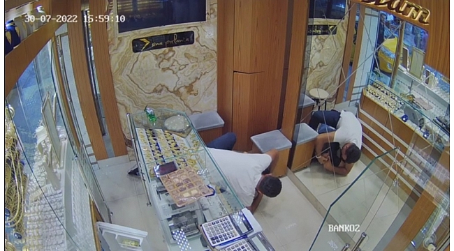 O anlar kuyumcu dükkanının güvenlik kameralarına saniye saniye yansıdı.