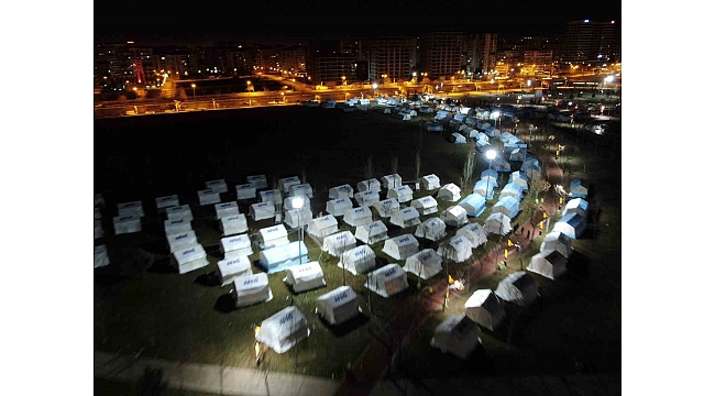 Diyarbakır'da deprem sonrası kurulan çadır kent gece havadan görüntülendi.