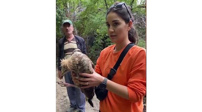 Bitkin düşen akbabayı fark eden Besra Özcan, "Doğa yürüyüşü için keşfe çıkarken kuşumuz hasta hasta yürüyordu. Uçamadığını anlayınca hemen aldık. Tedavisi için Doğa Koruma ve Milli Parklar ekiplerine teslim edeceğiz" dedi.