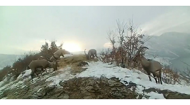 Elazığ'da doğaya bırakılan yemleri yiyen yaban keçileri ve kuşlar foto kapan ile görüntülendi.