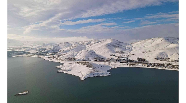 Elazığ'da doğunun gizli denizi olarak bilinen Hazar Gölü'nde kış güzelliği, seyrine doyum olmayan manzaralar sunuyor.
