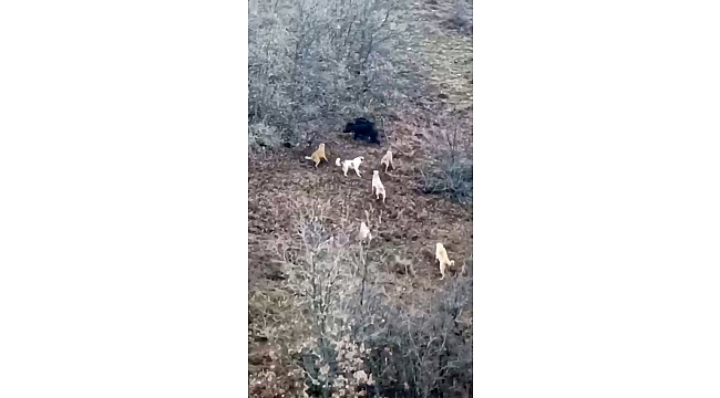 Elazığ'da aç kaldığı için yerleşim yerine inen domuzu köpekler kovaladı. O anlar kameralara yansıdı.