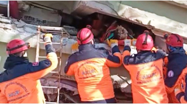Kahramanmaraş merkezli depremlerden etkilenen Hatay'ın Antakya ilçesinde görev yapan DPÜ AKUK, Esenlik Mahallesi'nde bir binanın enkazından anne, baba ve bir çocuğunu kurtarmayı başardı.