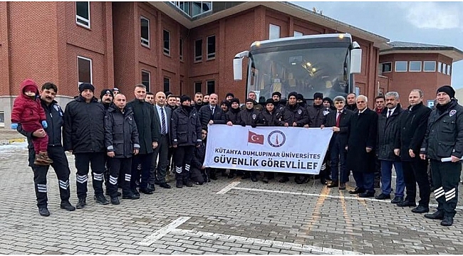 Kütahya Dumlupınar Üniversitesinin temas kurduğu kamu görevlileri tarafından Hatay'ın ihtiyaç duyduğu eşya ve personel bilgisi alındıktan sonra yapılan çalışma sonucu 24 güvenlik görevlisi, 7 teknisyen, 2 elektrikçi, 6 şoför bölgede görevlendirildi. Bununla birlikte 3 ton su, çok sayıda ve çeşitte gıda ürünü ve temizlik malzemesi, el feneri, pil, powerbank, jeneratör ipi, yağı ve yakıtı, ispirto ve ispirto ocağı, tüp, ilk yardım malzemesi de personeli Hatay'a taşıyan otobüsle bölgeye gönderildi.