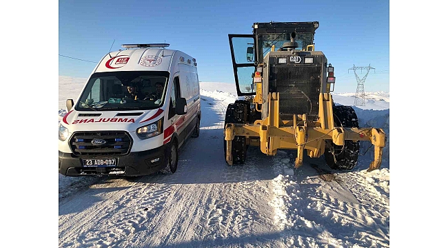 Elazığ'da kar yağışı nedeniyle yolu kapanan köyde mahsur kalan hasta için ekipler seferber oldu. Yol iş makineleriyle yol açıldı ve hasta ambulansla hastaneye yetiştirildi.
