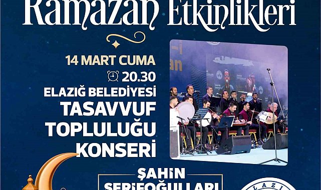 Elazığ Belediyesinin düzenlediği Ramazan etkinlikleri kapsamında Elazığ Belediyesi tasavvuf topluluğu konseri gerçekleştirilecek.