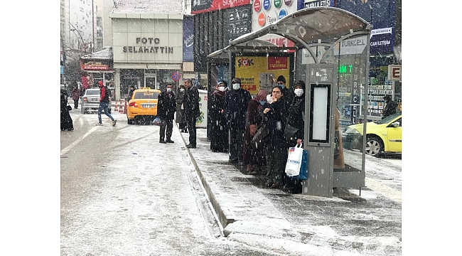 Elazığ'da öğle saatlerinde başlayan kar yağışı kenti beyaza bürüdü.