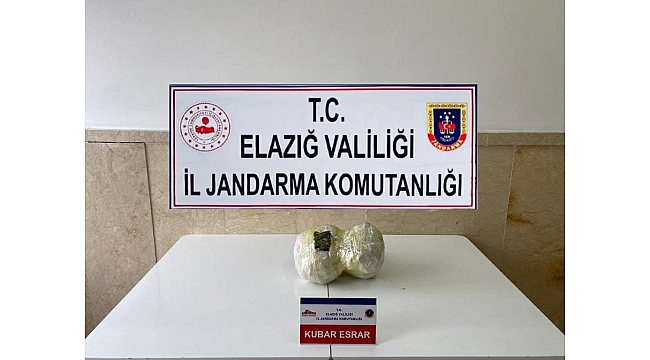 Elazığ'da jandarma ekipleri tarafından durdurulan araçta bulunan şüphelinin çantasında 1 kilo 700 gram kubar esrar maddesi ele geçirilirken, şüpheli tutuklandı.
