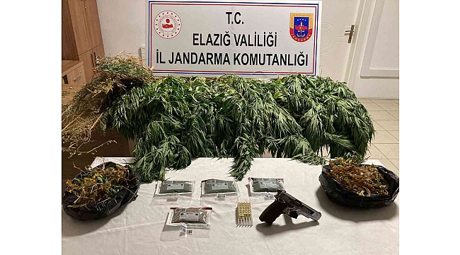 Elazığ'da jandarma ekiplerinin yaptığı operasyonda 1 kilo esrar ve 17 kök kenevir ele geçirildi.