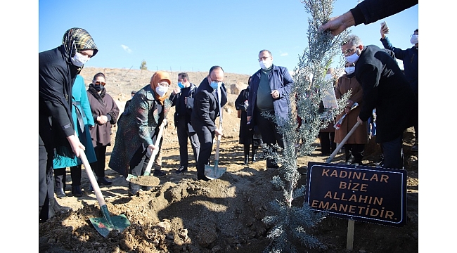 Fidan dikme etkinliğine Vali Erkaya Yırık'ın yanı sıra eşi Ayşe Yırık ile kurum müdürlerinin eşleri ve çok sayıda kadın katıldı.