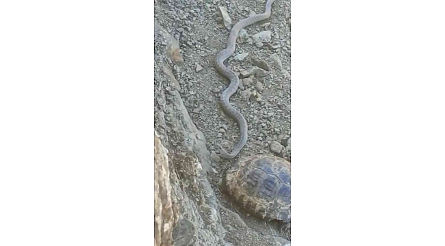 Elazığ' da yaklaşık iki metre uzunluğunda yılan ve kaplumbağa birlikte görüntülendi.