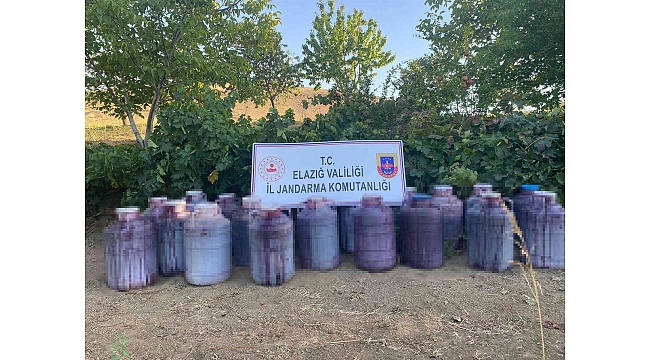 Elazığ'da jandarma ekipleri tarafından yapılan operasyonda 2 ton kaçak şarap ele geçirildi.