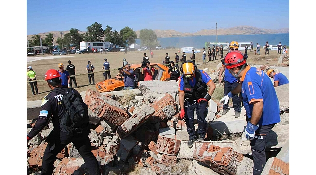 Elazığ'ın Sivrice ilçesinde 6 ilin katıldığı deprem tatbikatında, binadan göle, enkaz altından araçta sıkışmaya birçok alanda mahsur kalanlar gerçeği aratmayan tatbikatla kurtarıldı.