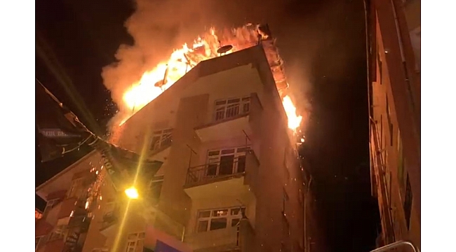 Elazığ'da bir binanın çatısı alevlere teslim oldu.