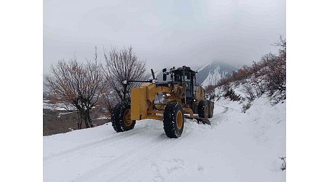 Elazığ'da kar yağışından dolayı kapanan 84 köy yolunda ekipler çalışmalarını sürdürüyor.