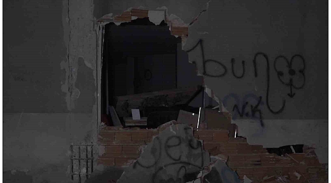 Polis ve AFAD ekipleri tarafından binanın etrafına şerit çekildi.