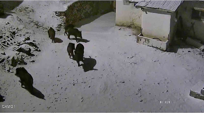 Elazığ'da aç kalan yaban domuzları, yerleşim yeri yakınına inerek yiyecek aradı. O anlar güvenlik kamerasına yansıdı.