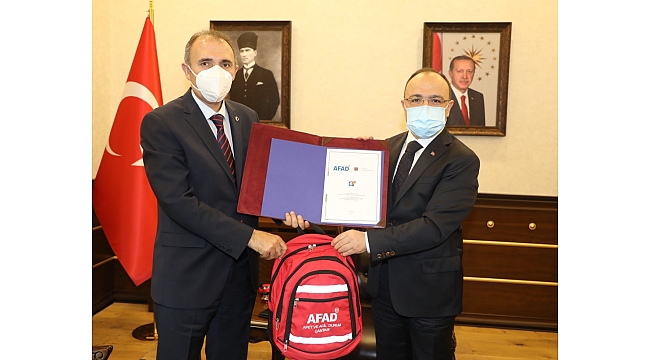 İçişleri Bakanlığı tarafından 2021 yılının "Türkiye Afet Eğitim Yılı" olarak ilan edilmesi kapsamında Elazığ Valiliği'nde Vali Erkaya Yırık ile FÜ Rektörü Prof. Dr. Fahrettin Göktaş, hazırlanan protokolü imzaladı. Protokol sonrasında İl AFAD Müdürü Osman Pıhtılı, Vali Yırık ile Rektör Göktaş'a afet ve acil durum çantası hediye etti.