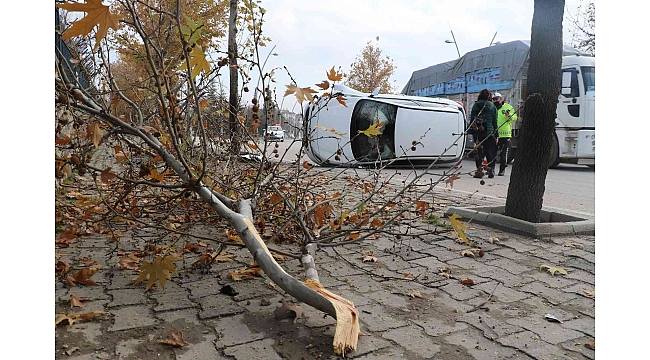 Elazığ'da sürücüsünün direksiyon hakimiyetini kaybettiği otomobil ağaca çarpıp yan yattı. Kazada sürücü hafif yaralandı.