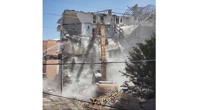 Kahramanmaraş'ta meydana gelen depremlerden etkilenen iller arasında bulunan Elazığ'da merkez ve ilçelerde ağır hasarlı binaların yıkımı devam ediyor. Alınan çevre güvenliğinin ardından binalar iş makineleri ile yıkılıyor. İl genelinde ağır hasarlı binaların yıkımlarının süreceği bildirildi.