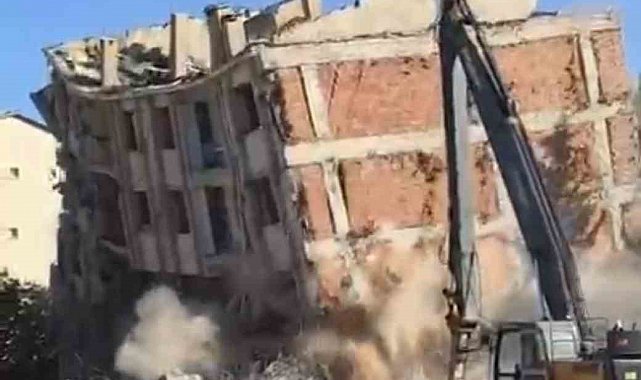 Kahramanmaraş'ta 6 Şubat 2023'te meydana gelen yıkıcı depremlerden etkilenen iller arasından bulunan Elazığ'da ağır hasarlı binaların yıkımı sürüyor. Bu çerçevede, Abdullahpaşa Mahallesi'nde ağır hasar alan 5 katlı bir binanın yıkımı için çalışma başlatıldı. Çalışmada bina, iş makinesinin makasını vurmasıyla bir anda yerle bir oldu. O anlar cep telefonu kamerası ile kaydedildi.