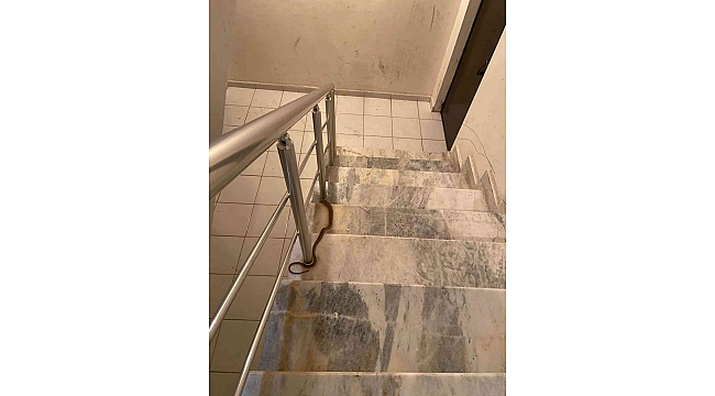 Elazığ'da apartmana giren yılan, kat sakinlerine korku dolu anlar yaşattı.