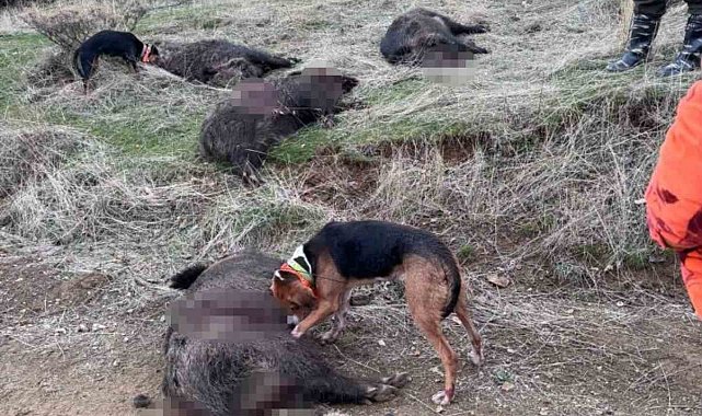 Av turizmi kapsamında avcılar, Elazığ'da dağlık alanlarda sürü halinde yaban domuzu avladı. Domuzlardan birinin yaklaşık 250 kilo ağrılığında olması dikkat çekti.