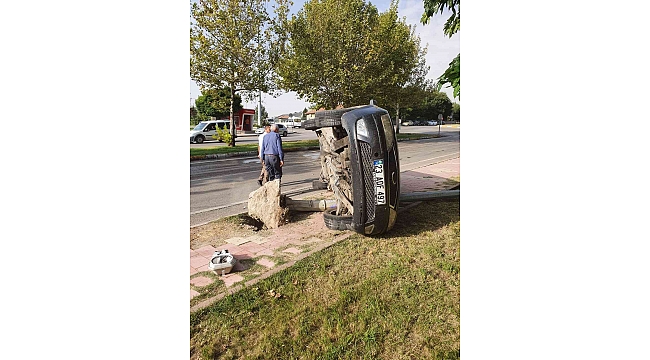 Elazığ'a aydınlatma direğine çarpan otomobil devrildi. Kazada, 2 kişi yaralandı.