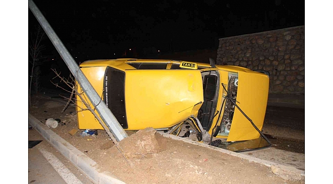 Elazığ'da sürücüsünün direksiyon hakimiyetini kaybettiği otomobil aydınlatma direğine çarparak yan yattı. Kazada 1'i bebek 3 kişi yaralandı.
