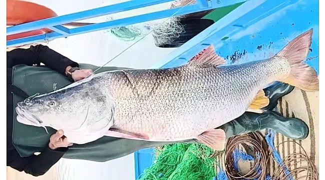 Elazığ'ın bir balıkçının ağına yaklaşık 46 kiloluk Turna balığı takıldı.