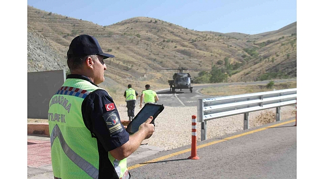 Elazığ'da İl Jandarma Komutanlığına bağlı ekipler, İl Emniyet Müdürlüğü ekipleri ile koordineli bir şekilde Kurban Bayramı tatili sonrası dönüş yollarında helikopter destekli trafik denetimi gerçekleştirdi.