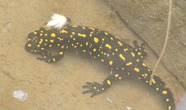 Elazığ'da nesli tükenme tehlikesi altında bulunan benekli semender görüntülendi.