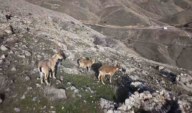 Nesli tükenme tehdidi altında bulunan ve avlanması yasaklanan dağ keçileri, Elazığ'ın farklı noktalarında görülmeye devam ediyor. Keban Fırat Kültür Spor Kulübü Başkanı Fethi Oruç, Kurşunkaya köyü kırsalında doğa yürüyüşü yaptığı ve sporcularına eğitim verdiği sırada sürü halindeki dağ keçilerini gördü. Oruç, doğada otlanan keçileri dron ile görüntüledi. Dağ keçileri bir süre sonra gözden kayboldu.