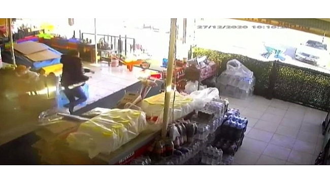 Elazığ'da sabah saatlerinde yaşanan 5.3 büyüklüğündeki deprem, bir marketin güvenlik kamerasına yansıdı.
