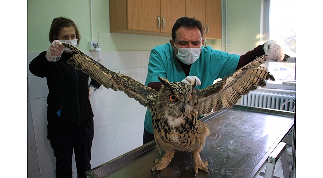 Baykuşun şu an uçabildiğini aktaran Han, "Gayet hareketli ve genel durumu iyi durumda. Büyük bir ihtimalle yarın Doğa Koruma ve Milli Parklar Müdürlüğüne göndeririz. Bunların türü giderek azalmakta özellikle yaban hayvanlarımızın sayıları giderek düşmekte. Kaçak avcıların bunları yaralaması, bunların hayatlarını bitiriyor. Bir de bunlar yaban hayvanı olduğu için hastanelere, kapalı ortamlara getirildiği zaman strese giriyorlar ve bunların beslenmeleri çok zor oluyor. Bu yüzden de bunların sayıları giderek azalmakta. Bu büyüklükte olmuyorlar, ilk defa bu kadar büyük bir 'Kulaklı Baykuş' geldi. Görmemiz iyi oldu ama sağlıklı olması bizi daha çok sevindirdi. Bunların kendi doğalarında soyları tükenmeden, kaçak avcılar tarafından vurulmadan rahat bir şekilde yaşamalarını temenni ediyoruz" şeklinde konuştu.