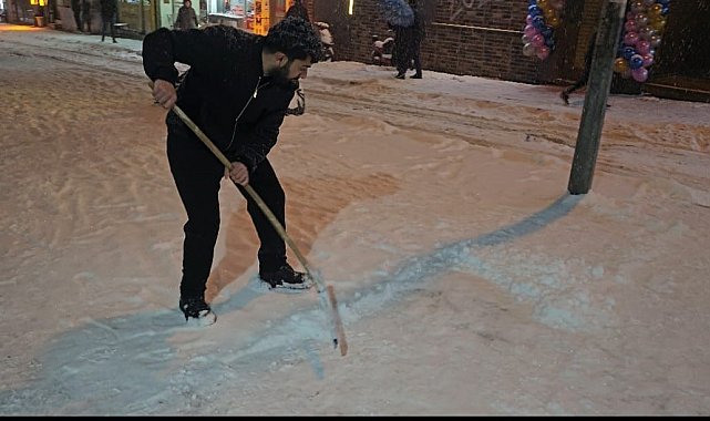 Elazığ'da etkili olan kar yağışının ardından esnaflar iş yerlerinin önünde biriken karları temizlemek için çalışma başlattı.