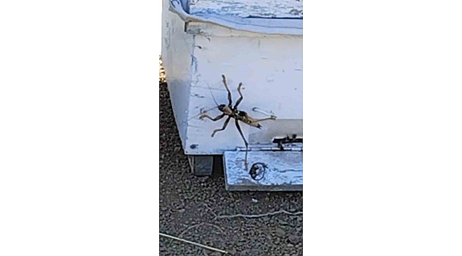Elazığ'ın Palu ilçesinde bal kovanları arasında dev etçil çekirge görüntülendi.