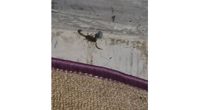 Elazığ'da bir ailenin evine akrep girdi. Balkonda fark edilen akrep korkuya neden olurken, aile tarafından kutuya bırakılan hayvan evden uzaklaştırıldı.
