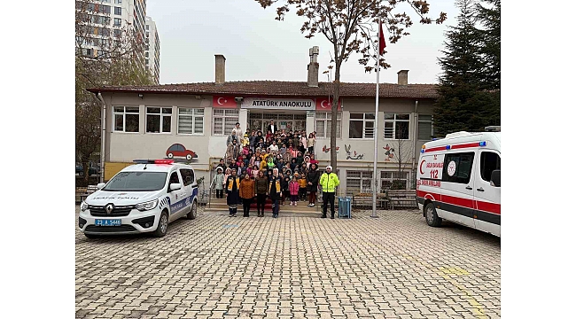 Etkinlikler çerçevesinde fermuar sistemini tanıtmak üzere Elazığ'da Atatürk Anaokulu'nu ziyaret eden ekipler, öğrencilere 112 acil çağrı merkezinin gereksiz yere meşgul edilmemesi, kaza, hastalık ve yaralanma durumlarında 112'ye ulaşım ve trafikte seyreden ambulansların geçiş önceliğine özen gösterilerek, fermuar sistemi ile yol verilmesi konusunda eğitim verildi.