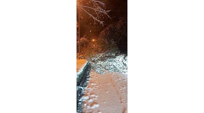 Elazığ'da gece saatlerinden itibaren etkili olan fırtına ve kar yağışı ağaçları devirdi.