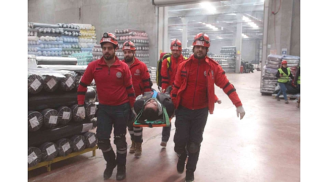 Afet Planı Uygulaması çerçevesinde Saka Tekstil'de deprem ve yangın tatbikatı gerçekleştirildi. Senaryo gereği Elazığ'da 6,2 şiddetindeki deprem neticesinde fabrikanın bazı bölümlerde çöküntü meydana geldi. 40 bin metrekare kapalı alana sahip olan fabrikanın 3 bölümünde bulunan bin kişi aynı anda çök, kapan, tut pozisyonu aldı. Ardından tahliye işlemi gerçekleşirken olay yerine UMKE, AFAD, itfaiye, KBRN ve sağlık ekipleri sevk edildi. AFAD ve UMKE yaralı olarak bulunan 2, itfaiye ekipleri de yangına bağlı zehirlenmeden içeride kalan 1 kişiyi kurtardı. Ardından kimyasal sızıntı olan ve yaralı bulunan diğer bölüm geçildi. Buraya özel kıyafetler ile ölçüm yaparak giren ekipler, yaralı dışarıya çıkardı. Başarılı bir şekilde gerçekleşen tatbikat gerçeği aratmadı.