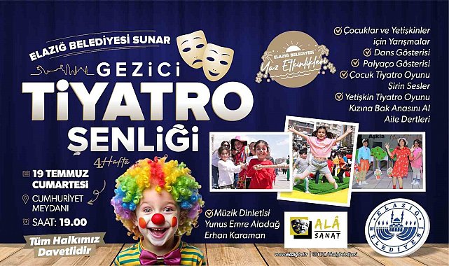 Elazığ Belediyesi yaz etkinlikleri kapsamında gezici tiyatro şenliği Cumhuriyet Meydanında, Elazığ Belediyesi Kadın Musiki Topluluğu ise Harput'ta sahne alacak.