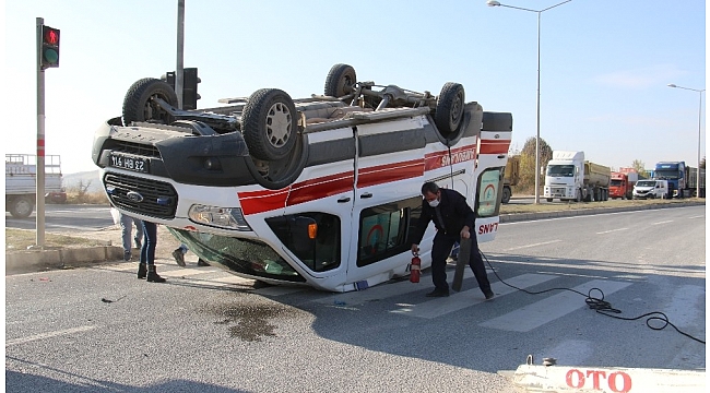 Elazığ'da hafif ticari araç ile çarpışan hasta taşıyan ambulans ters döndü, 3'ü sağlık personeli 4 kişi yaralandı.
