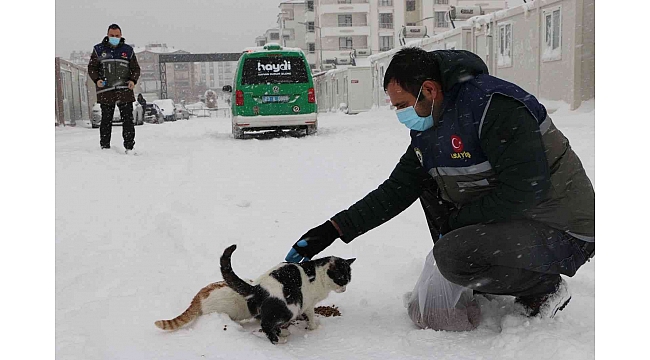 Elazığ'da Hayvan Durum İzleme (HAYDİ) polisleri, soğuk kış koşullarında yiyecek bulmakta zorluk çeken sokak hayvanlarını mama ile besledi.