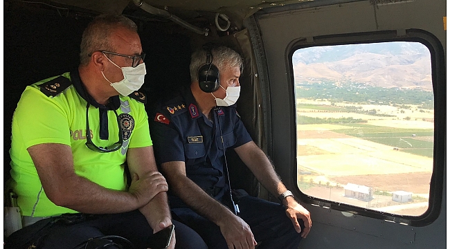 Elazığ'da İl Jandarma Komutanlığına bağlı ekipler, İl Emniyet Müdürlüğü ekipleri ile koordineli bir şekilde Kurban Bayramı tatilinin son gününde helikopter destekli trafik denetimi gerçekleştirdi.