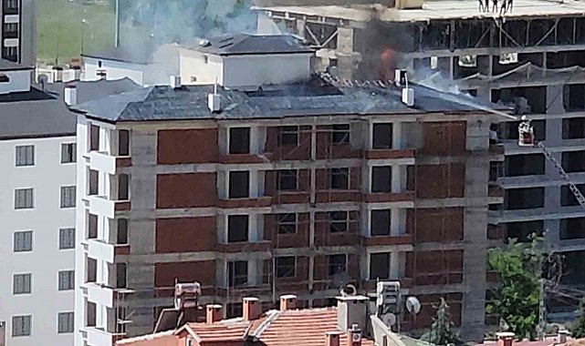 Elazığ'da inşaat halindeki binanın çatısında çıkan yangın, itfaiye ekiplerince söndürüldü.