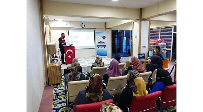 Yurtbaşı Merkez Camii konferans salonunda gerçekleşen programda ekipler, kadınlara cep telefonlarına KADES uygulamasını indirmeleri için de yardımcı oldu.