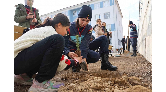 Elazığ İl Jandarma Komutanlığı Harput Jandarma Karakol Komutanlığı, 20 Kasım Dünya Çocuk Hakları Günü kapsamında bir ortaokulda düzenlediği fidan dikim etkinliğiyle çevre bilincine ve doğa sevgisine dikkat çekti.